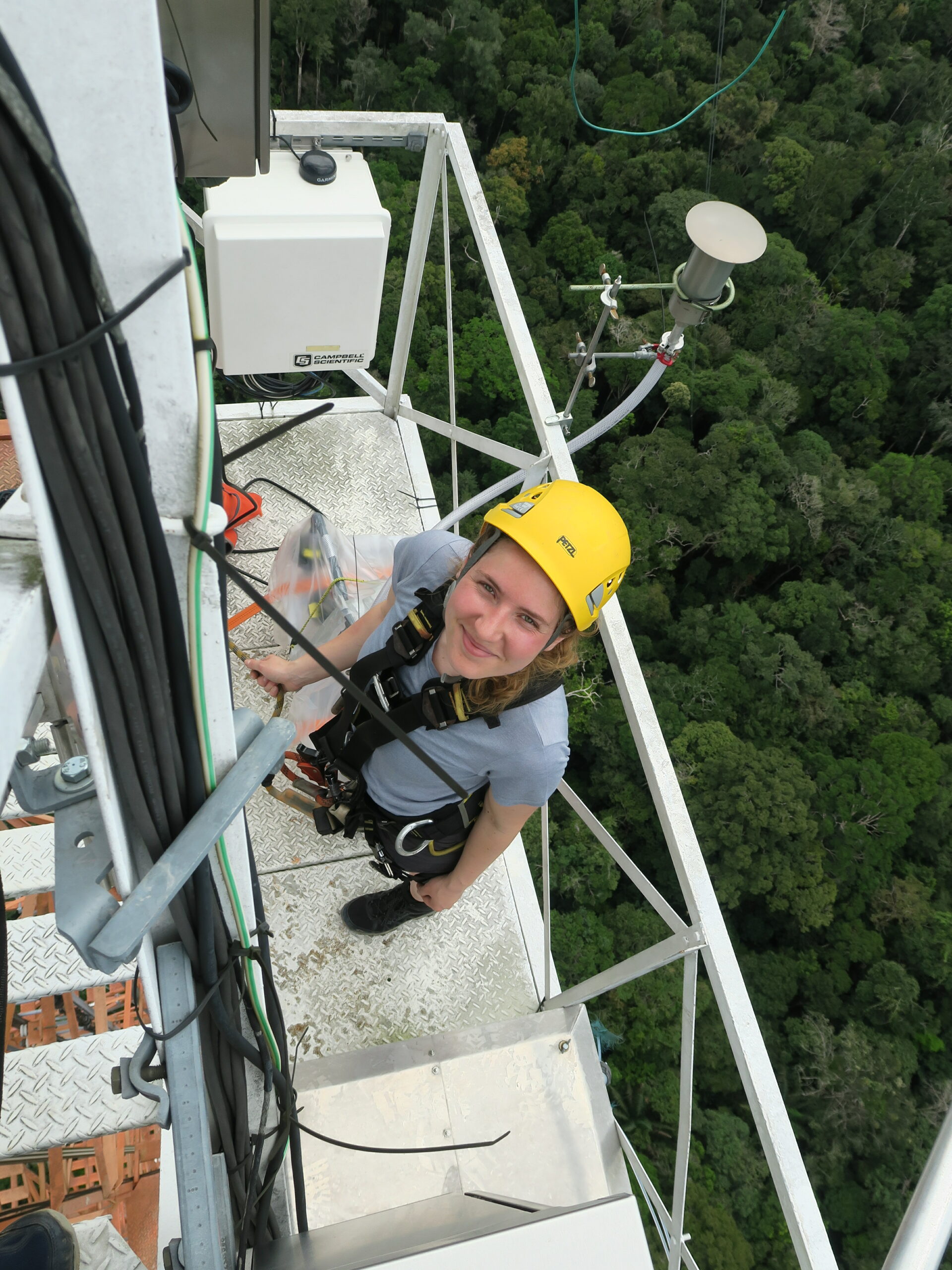 In my Master’s degree, I specialized in Analytical Chemistry. So, one day I was sitting in Prof. Hoffmann’s lecture and saw a video in which a drone took off from the ground and flew along an orangish-white striped tower. Far and wide, nothing could be seen but the seemingly endless expanses of trees in the Amazon rainforest. The video impressed me so deeply that this was the moment when a little dream began to emerge in me. Two years later I took over the research, within the framework of the ATTO project, in Prof. Hoffmann’s group. Finally, in April 2022 my dream came true and I climbed the ATTO tower for the first time. In reality, it was even more impressive than in the video!