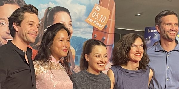 Mira (second to the right) at the movie premiere of "Checker Tobi und die Reise zu den fliegenden Flüssen", with Tobi Krell, Xuan-An Amy Truong, Marina Blanke and director Johannes Honsell (left to right).